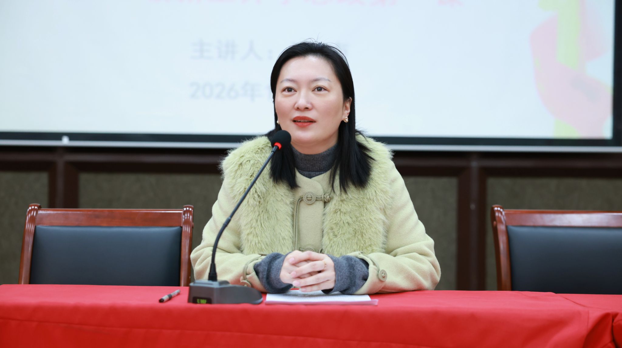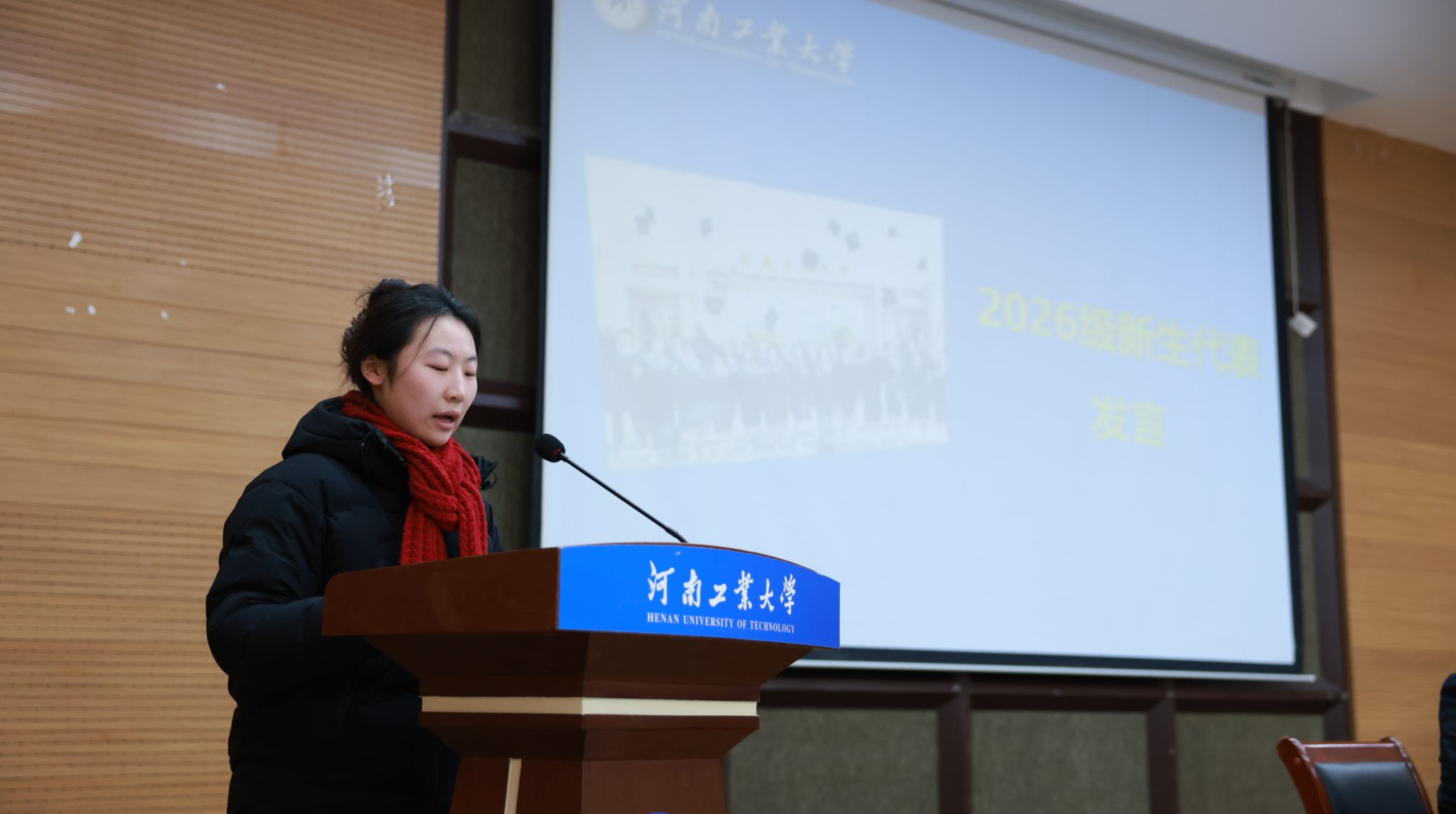 2026级法学专业学生朱程琳作为新生代表发言。她首先感谢学院领导、老师们在招生录取阶段的亲切帮助和热情接待,让自己深深地感受到了校园浓郁的人文氛围和家的温暖。她表示经历过残酷的现实社会之后更觉得知识难能可贵,希望同学们在今后的学习中要学好专业知识,全面提升自己,才能更有信心在社会的大潮中立于不败之地。