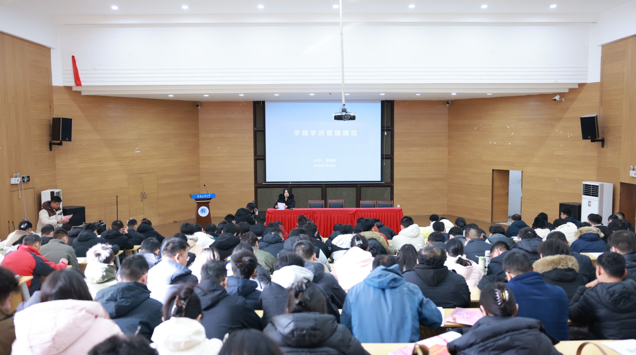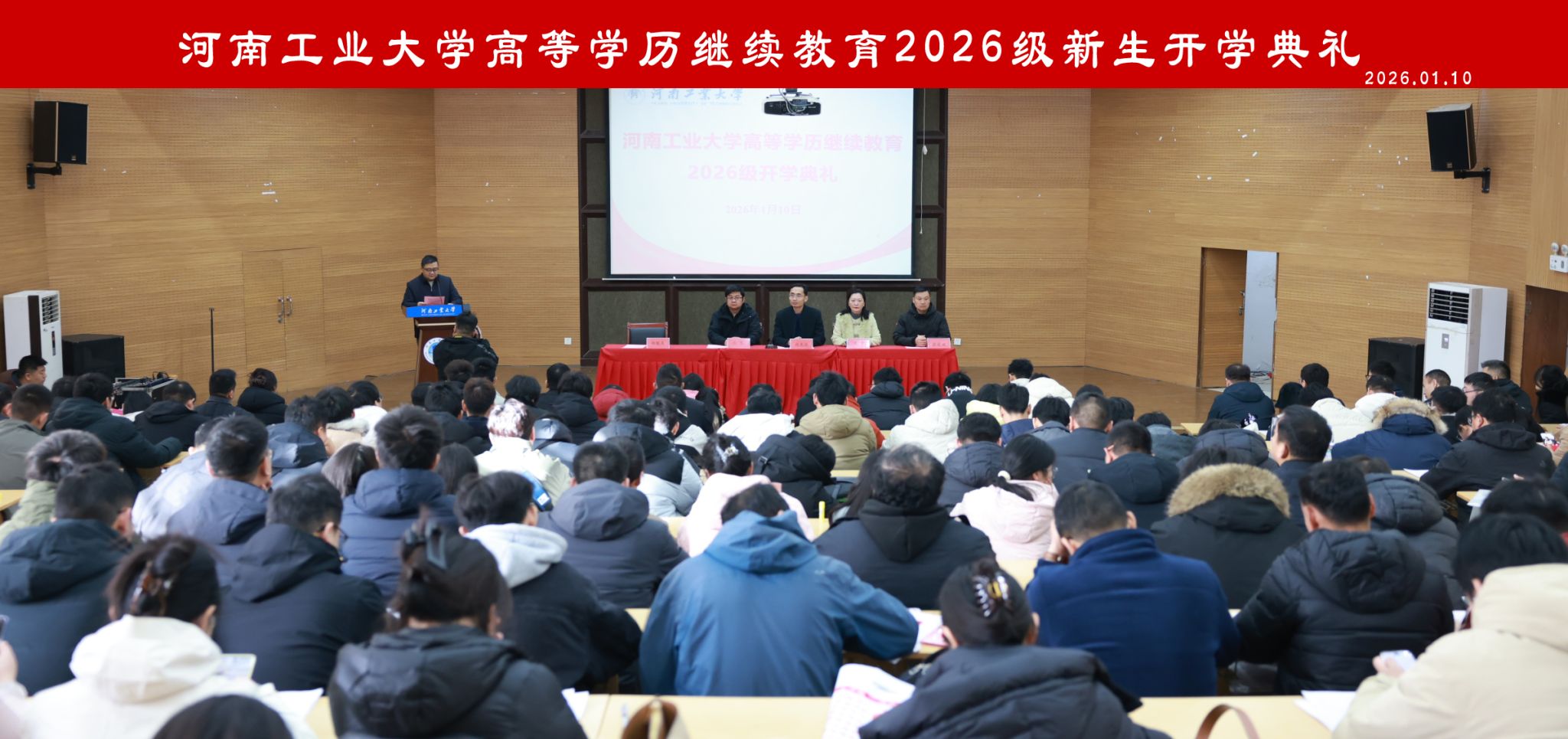 1月10日上午,继续教育学院在嵩山路校区学术报告厅举行了高等学历继续教育2026级新生开学典礼。学院院长刘克非、副院长沈贞、张翼及全体教职工参加了典礼。典礼由学院办公室主任杨银良主持。