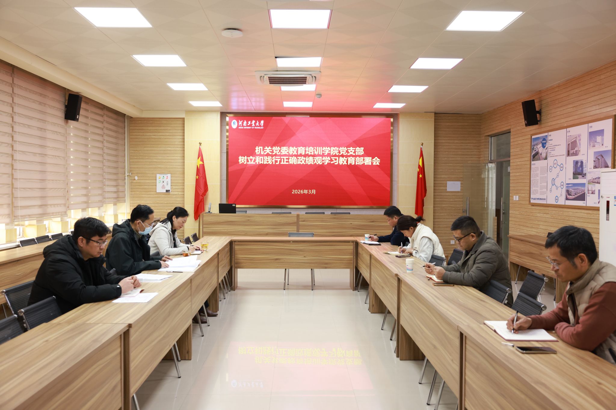 3月6日,在惟明楼7501会议室,机关党委教育培训学院党支部召开党员大会,认真学习贯彻习近平总书记关于树立和践行正确政绩观学习教育的重要讲话和重要指示精神,传达学习中央党的建设工作领导小组会议部署、中共中央办公厅《关于在全党开展树立和践行正确政绩观学习教育的通知》精神,部署启动树立和践行正确政绩观学习教育工作。学院党支部书记刘克非主持会议并讲话,全体党员参加会议。